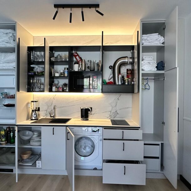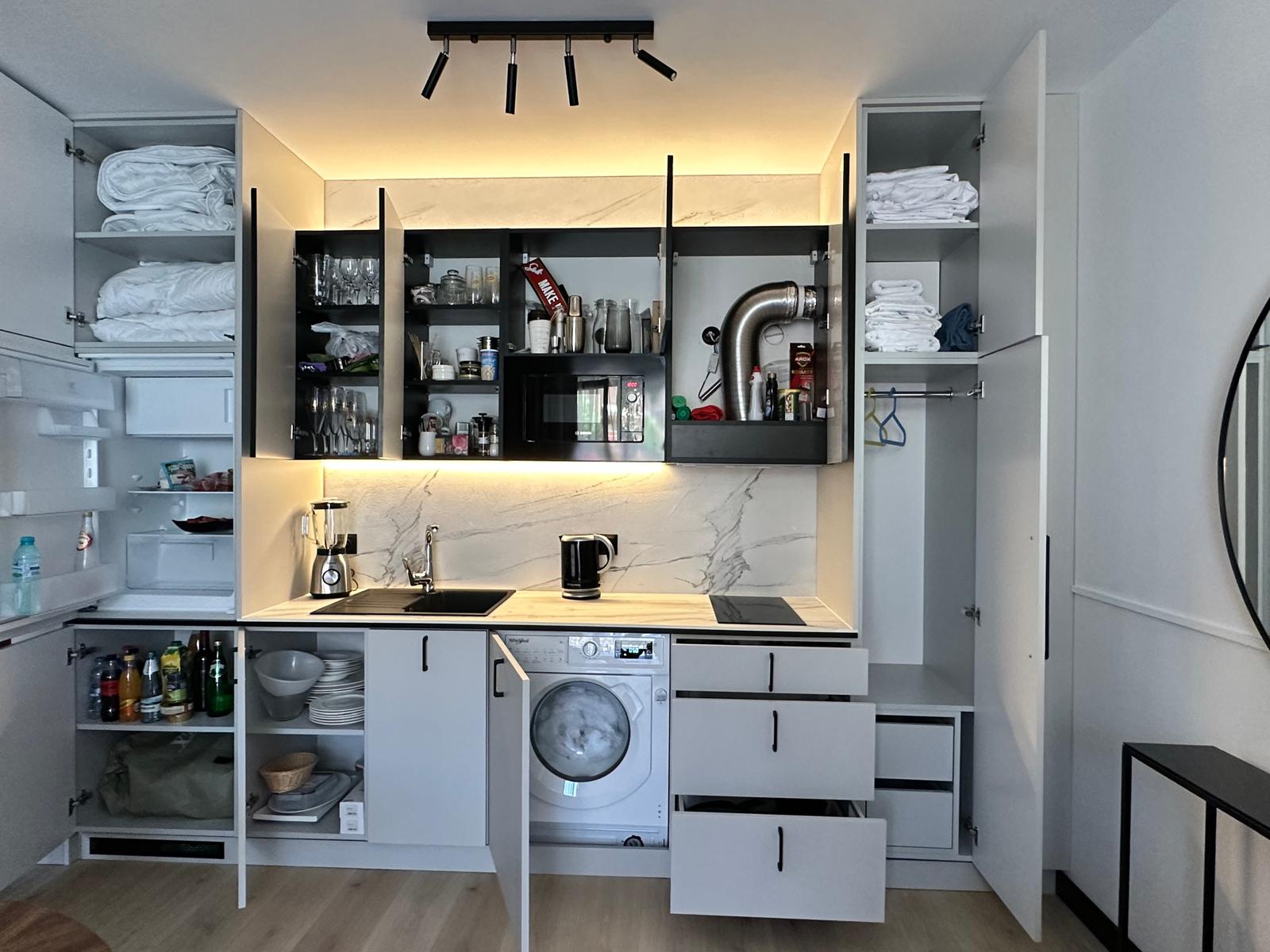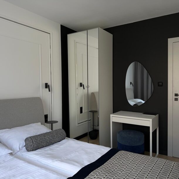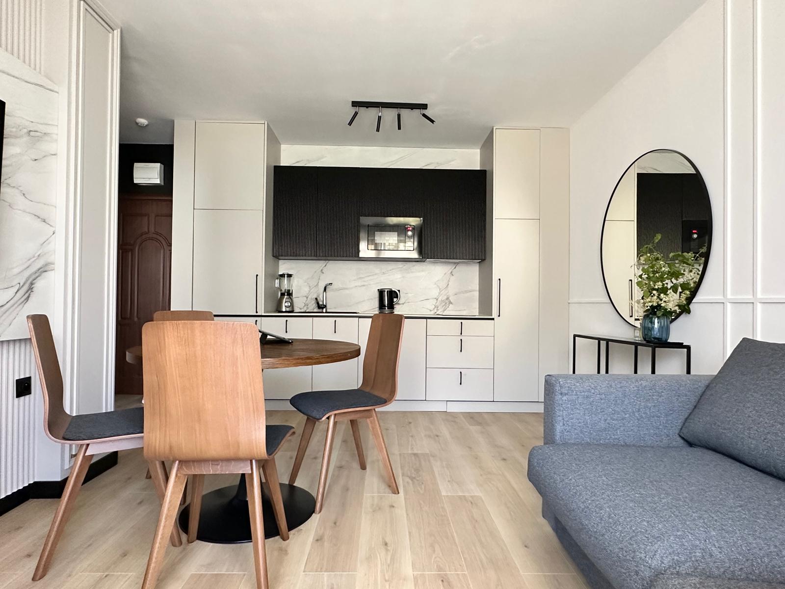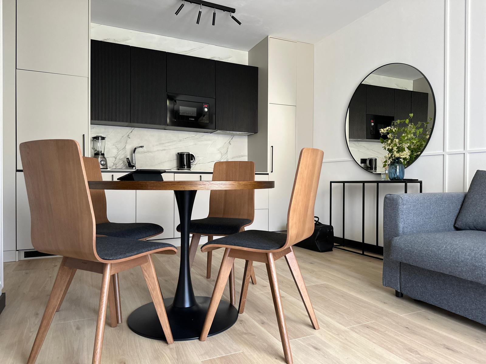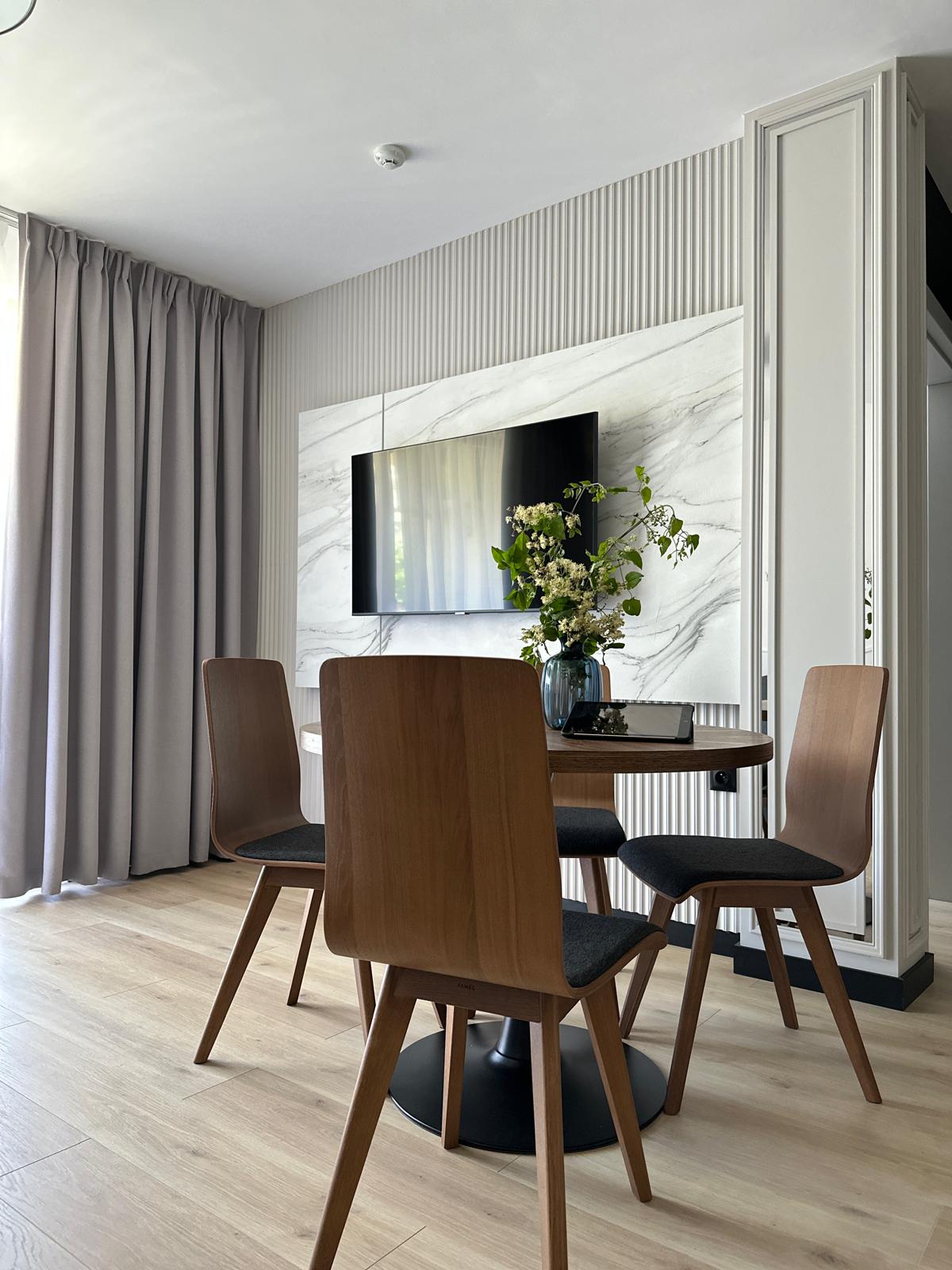 Sam apartament – to stylowe wnętrze z kompletnym wyposażeniem kusi do zamieszkania na dłużej niż tylko wakacyjny urlop.